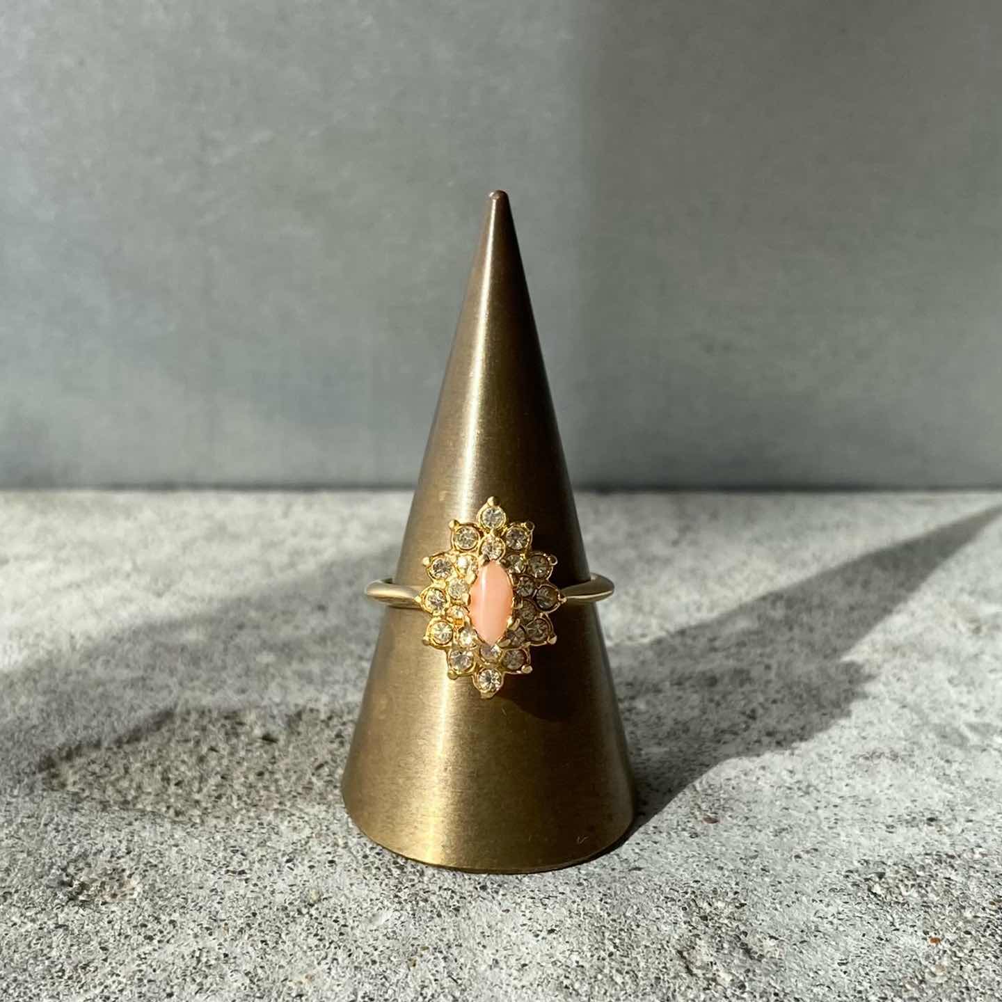 Vintage 80s-90s USA retro coral pink stone bijou ring