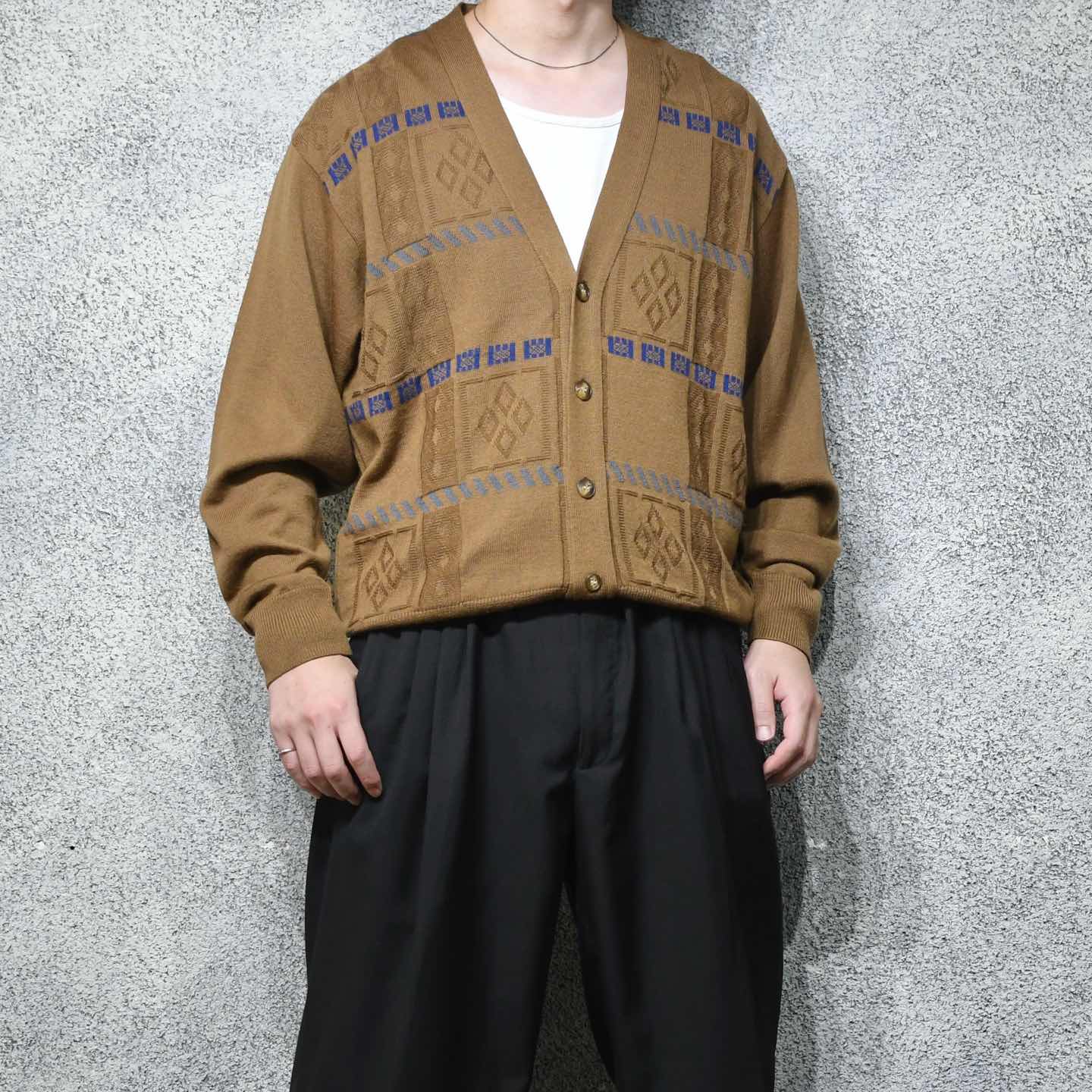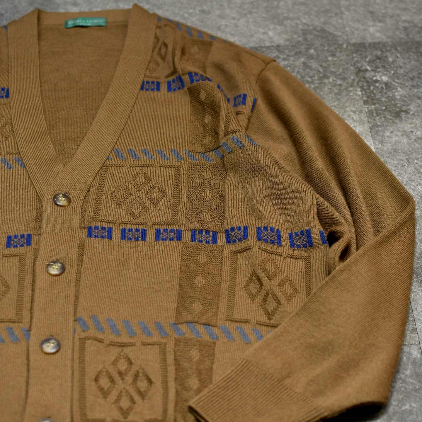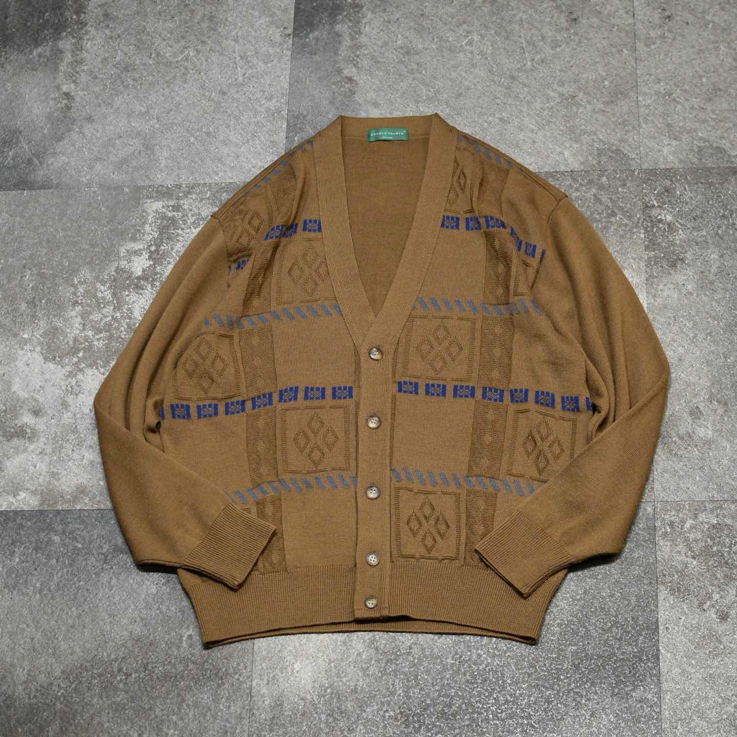 古着 アクリル コットン 幾何学模様 カーディガン セーター ニット 総柄 柄