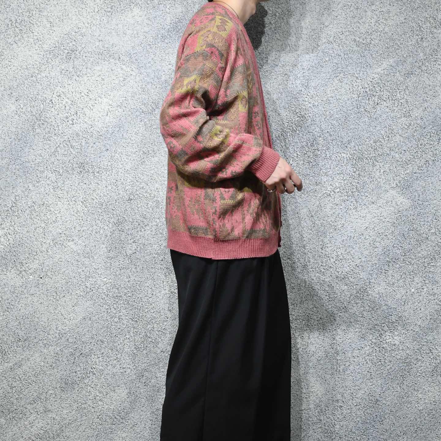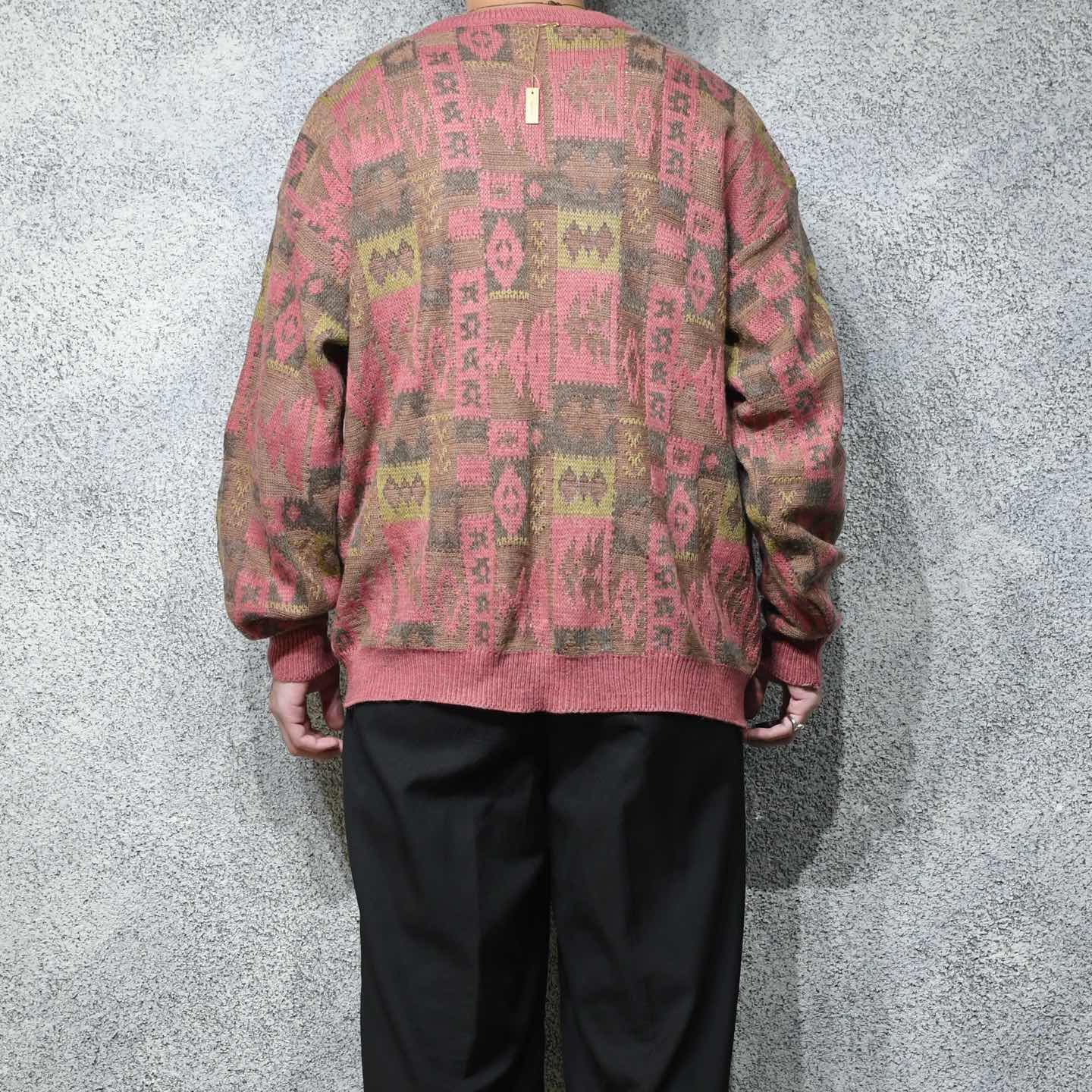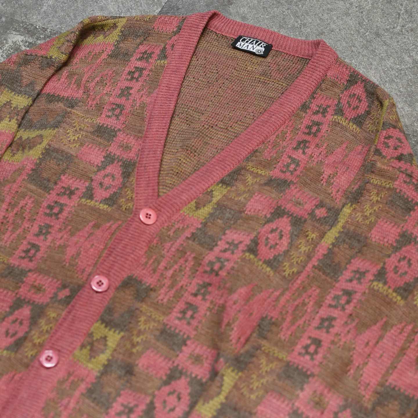 古着 アクリル コットン 幾何学模様 カーディガン セーター ニット 総柄 柄