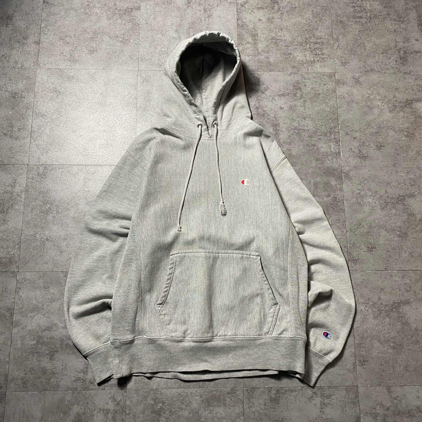 Champion チャンピオン リバースウィーブ 刺繍ワンポイント グレー スウェット パーカー