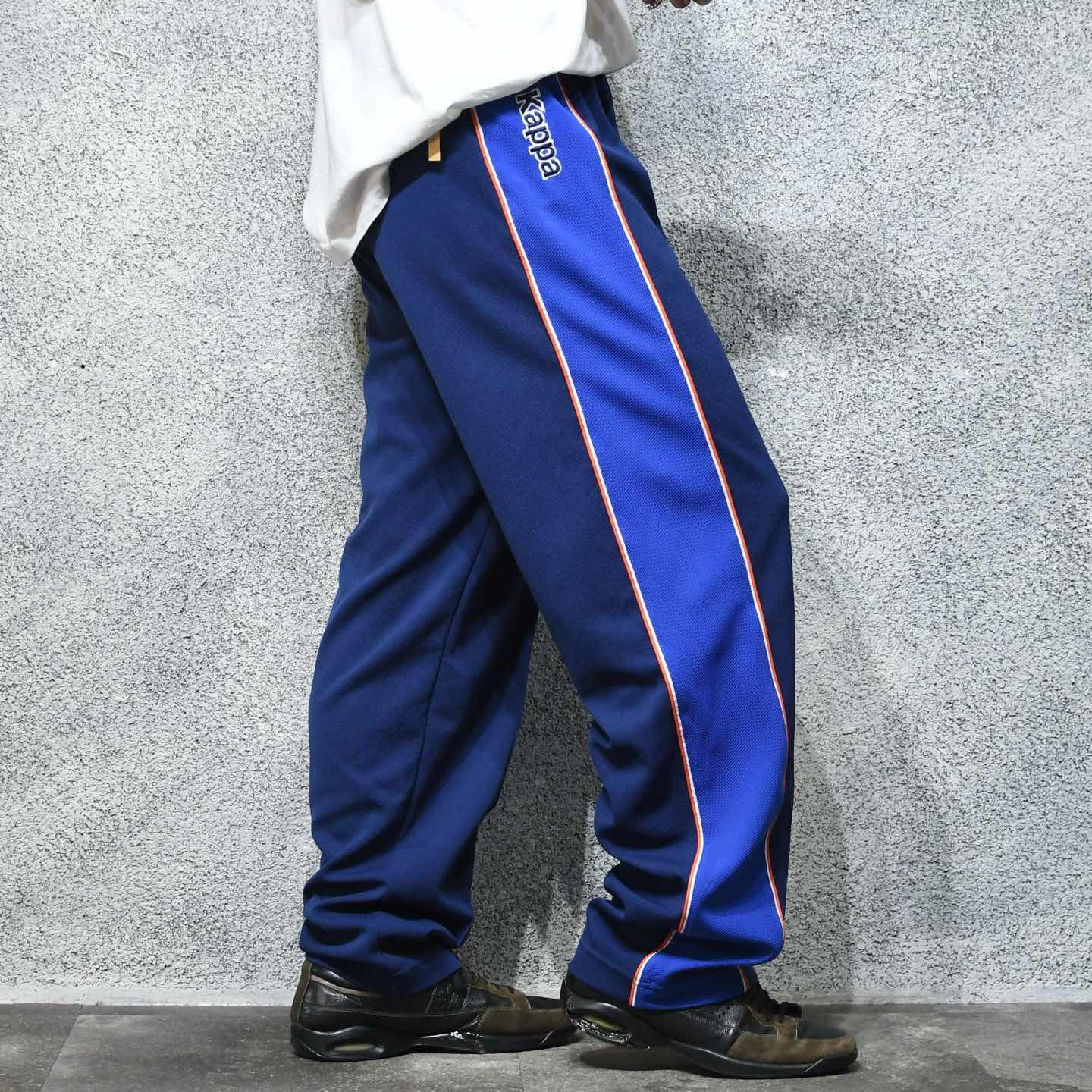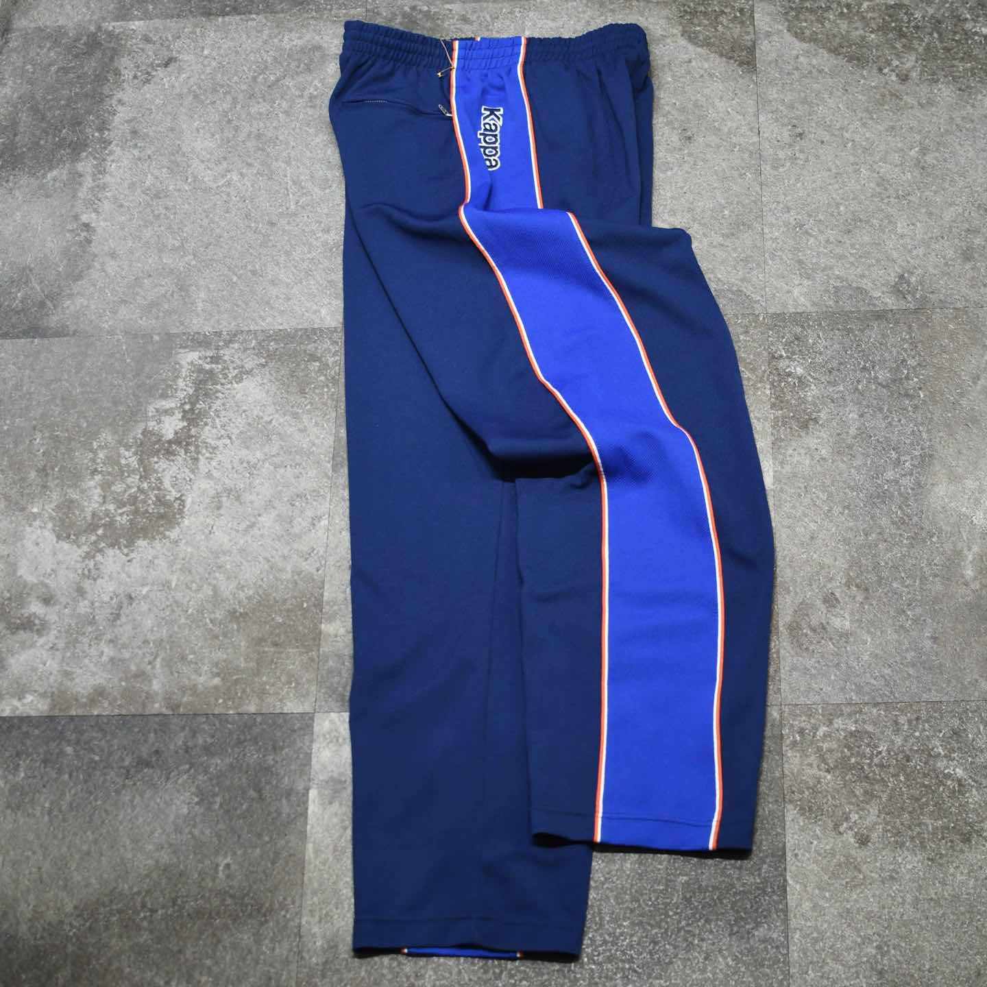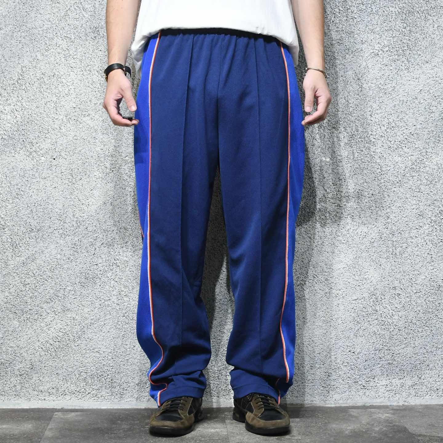 SIZE:X-LARGE ウエスト〜116cm(ドローコード付き) 総丈110.5cm 股下80.5cm わたり39cm 裾幅23.5cm fabric/poly 着用画像 177cm/64kg センタークリースにステッチ加工が施された トラックパンツ。 それによってトラックパンツでありながら、 ややドレスよりなスタイリングにも 落とし込める一本です。 ワイドなシルエット、足元にもしっかり 溜まる丈感が◎ AdidasやNIKEとの差別化も図れて、 イタリアのブランドらしいディテールを 味わうことの出来るアイテムとしておすすめです。 ※裾上げ等のレングス直しにつきましては、 購入前に、必ずご連絡お願い致します。 ※撮影状況により、実物と多少色が異なる 場合がございます。 ※古着を取り扱っているため、気づかない汚れや ほつれがある場合がございます。 ※サイズは着用感で選んでおり、 表記サイズは説明欄の最初に記載しております。 オーバーサイズ old vintage ヴィンテージ used 80's 90's POLO RALPH LAUREN Eddie Bauer OLD GAP LANDS' END ランズエンド LLBean エルエルビーン オールドギャップ エディーバウアー ラルフローレン ブルックスブラザーズ Brooks Brothers イージーパンツ などがお好きな方 #vintage #オーバーサイズ #old #used #90s #80s #古着 #ヴィンテージ #LLBean #エルエルビーン #EddieBauer #エディーバウアー #oldgap #オールドギャップ #LANDSEND #ランズエンド #NAUTICA #ノーティカ #ラルフローレン #POLORALPHLAUREN #ブルックスブラザーズ #BrooksBrothers #トラックパンツ #kappa #ワイドパンツ #イージーパンツ
