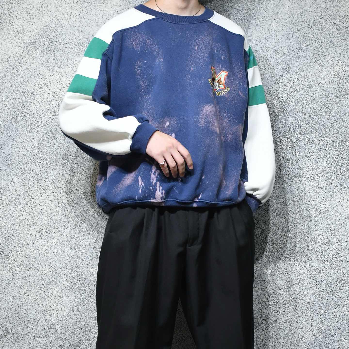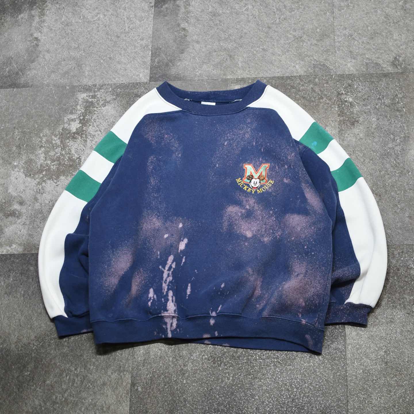 古着 Disney ブリーチ ショート丈 スウェット トレーナー mickey