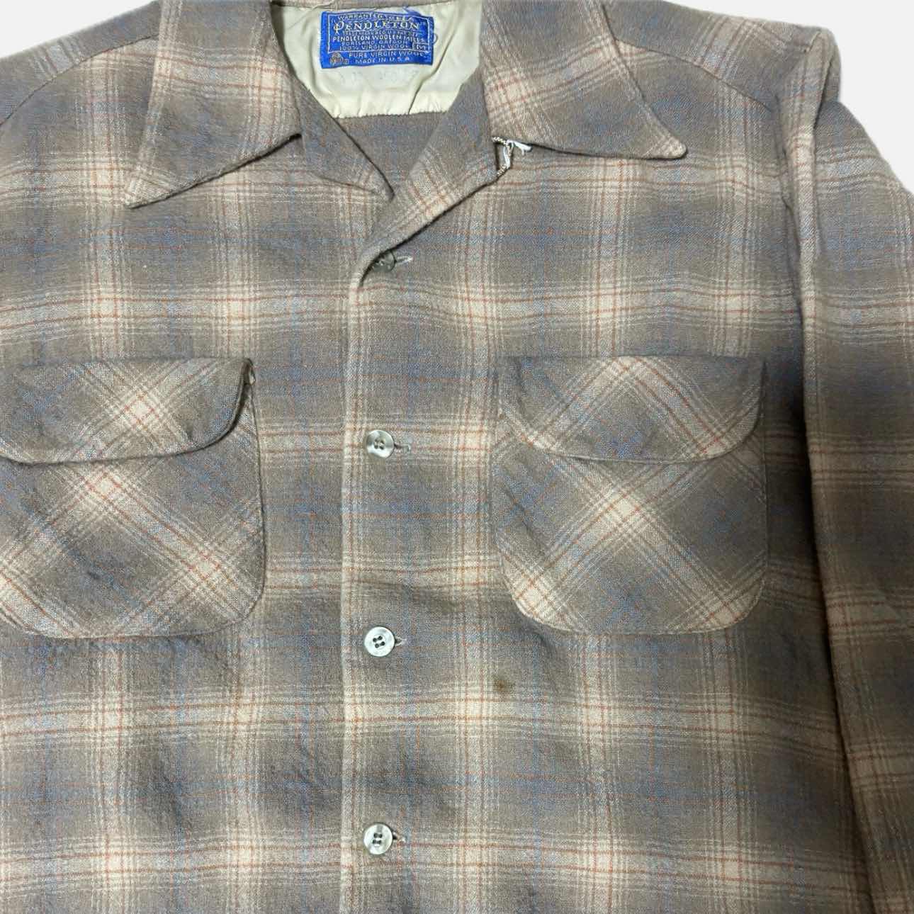 ペンドルトン オンブレチェックシャツ 70s USA製 表記サイズ M 着丈 64cm 身幅 150cm 肩幅 44cm 袖丈 56cm 手寸法なので多少誤差あります。 古物を扱っていますので汚れ、破れ等ご理解よろしくお願いします。 管理番号 5A21 #vintage #古着 #used #70s #pendleton