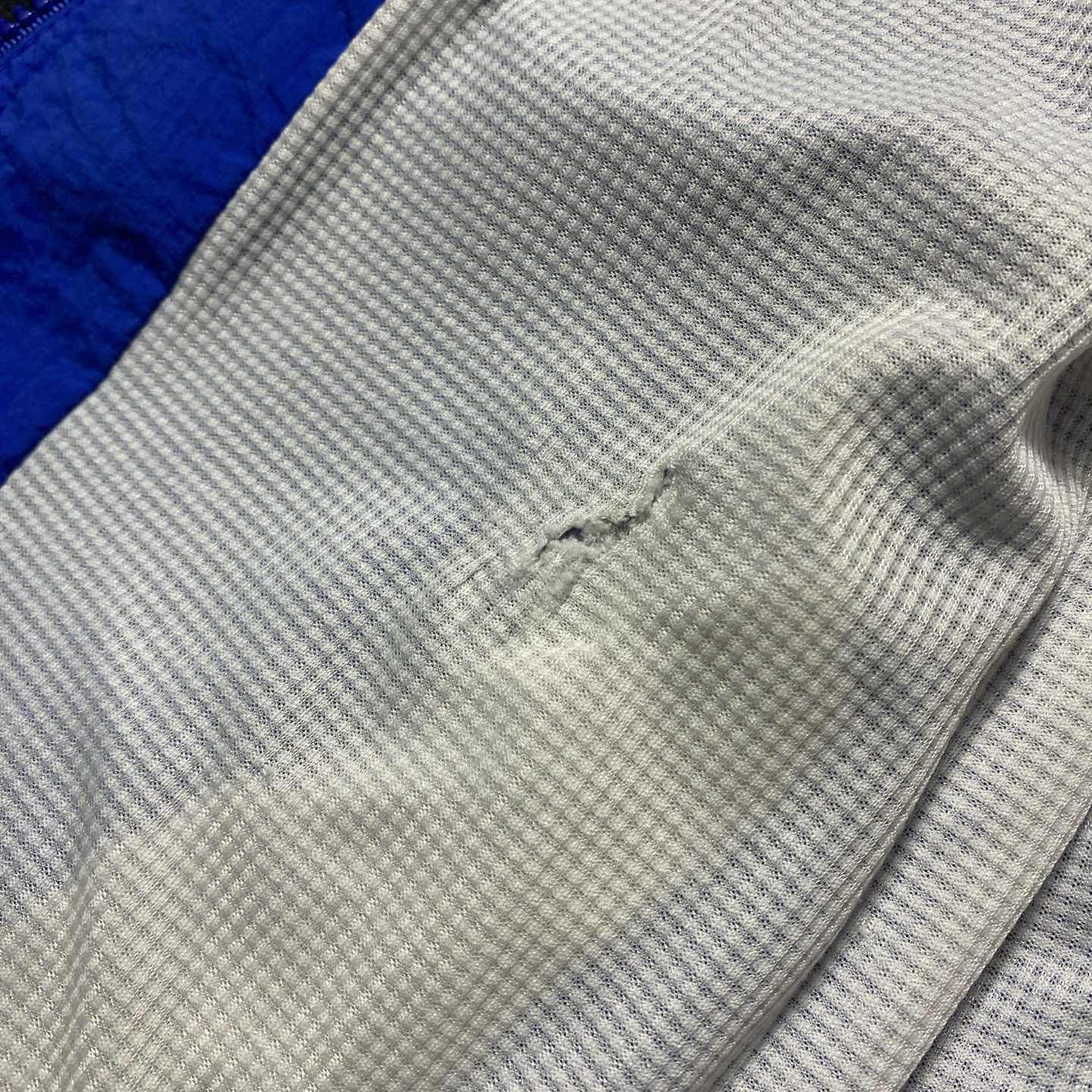 ○Size○ 表記→XL ・着丈72 ・身幅71 ・肩幅64 ・袖丈60 (cm) ○Color○ ・ブルー、ブラック ○Material○ ・表面↪︎100%ナイロン ・裏地↪︎100%ポリエステル ○Condition○ ・裏地に一部ほつれ箇所あり ○Caution○ 当店で取り扱っている商材は全て『古着』となっております。 そのため、多少の状態難(ほつれ、傷、汚れ、リブの伸び、使用感、擦れ、色あせ、etc)がある場合がございます。 新品同様の完璧なお品物をお求めの方は当店でのお買い物を控えて頂きますよう宜しくお願いします。 また、購入された商品に関しましては、購入日時から起算して『72時間以内に』発送手続きの方を取らせて頂きます。 お急ぎの場合は購入前に当店オンラインストアの方にお問い合わせ頂きますよう宜しくお願いします。 25/1561