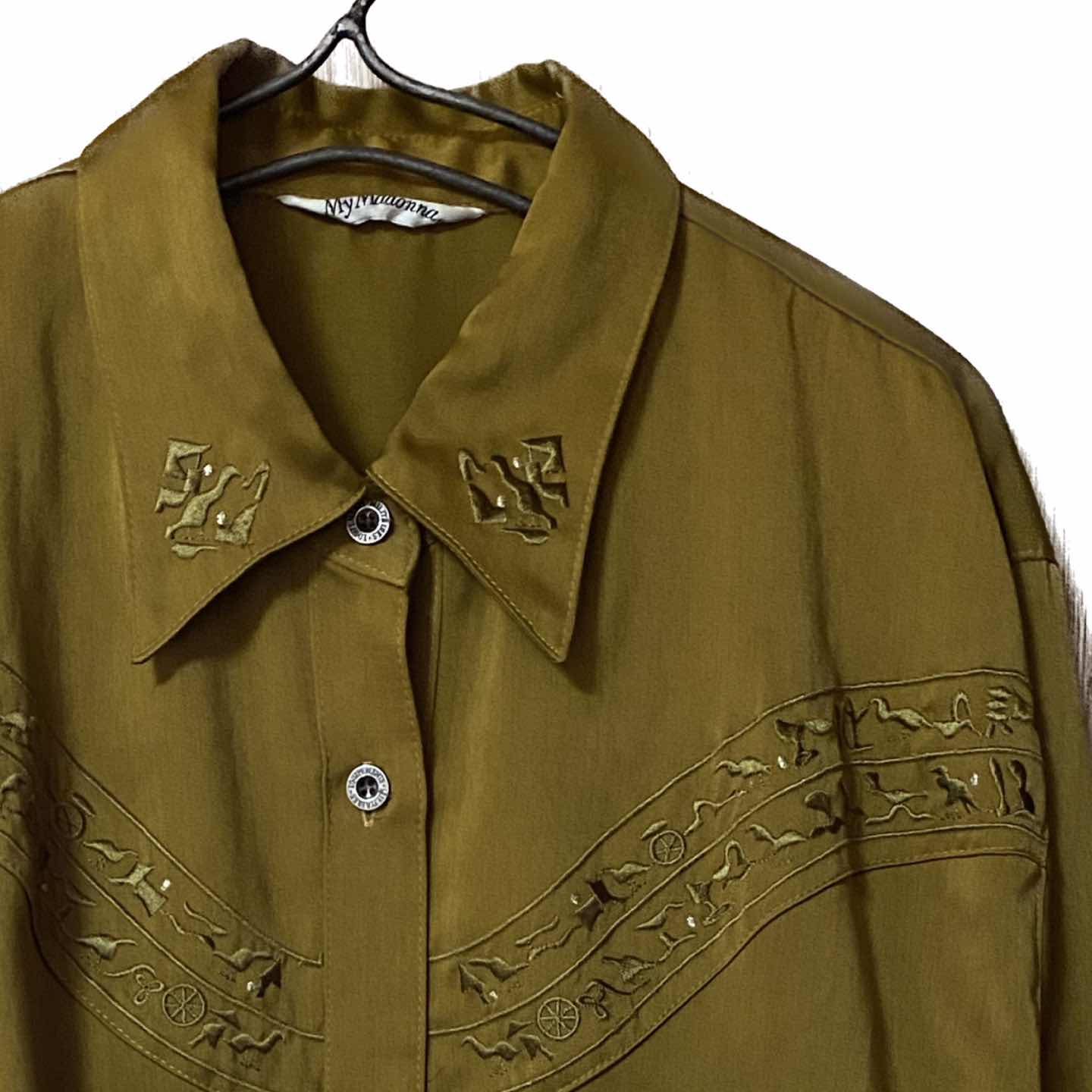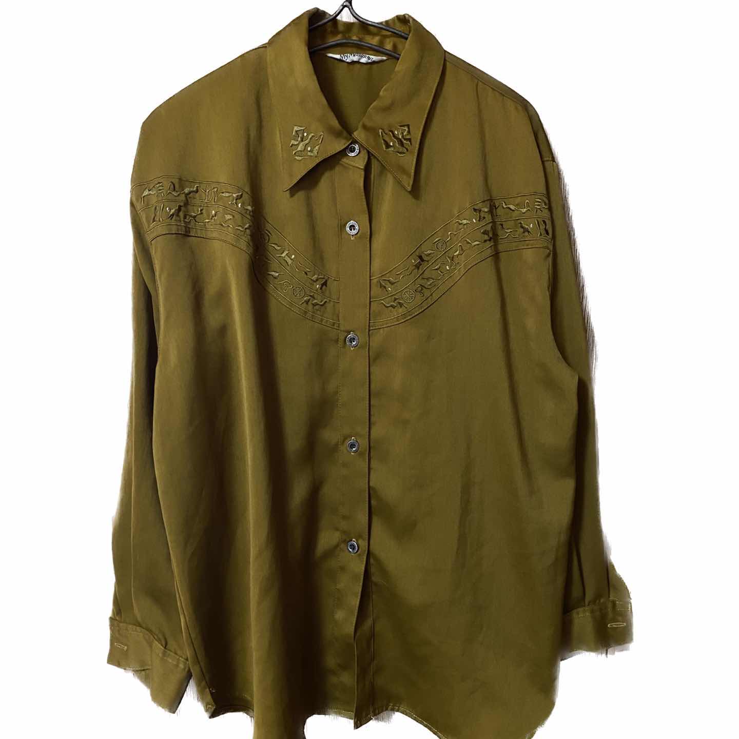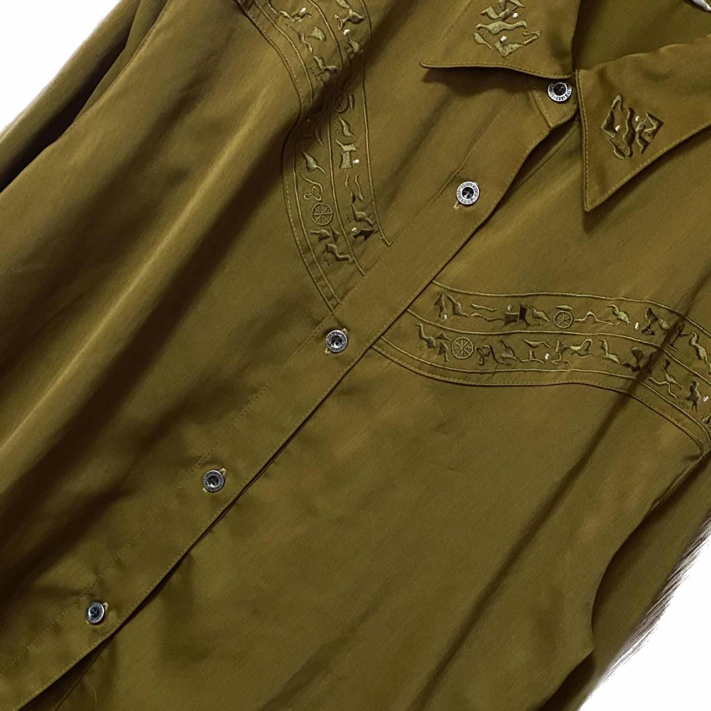 美品 60-70s ヴィンテージ チンスト 刺繍シャツ Vタグ ハ襟L