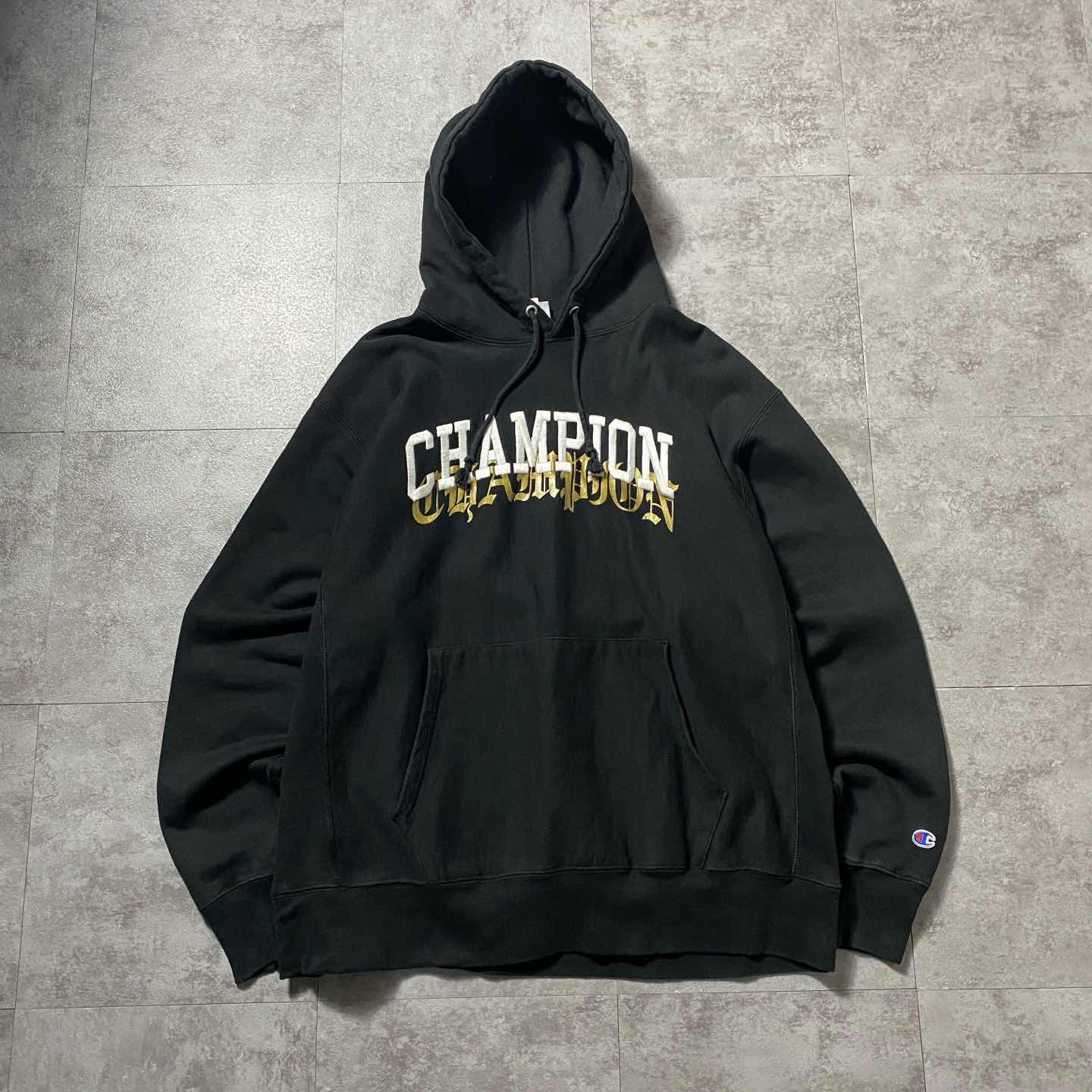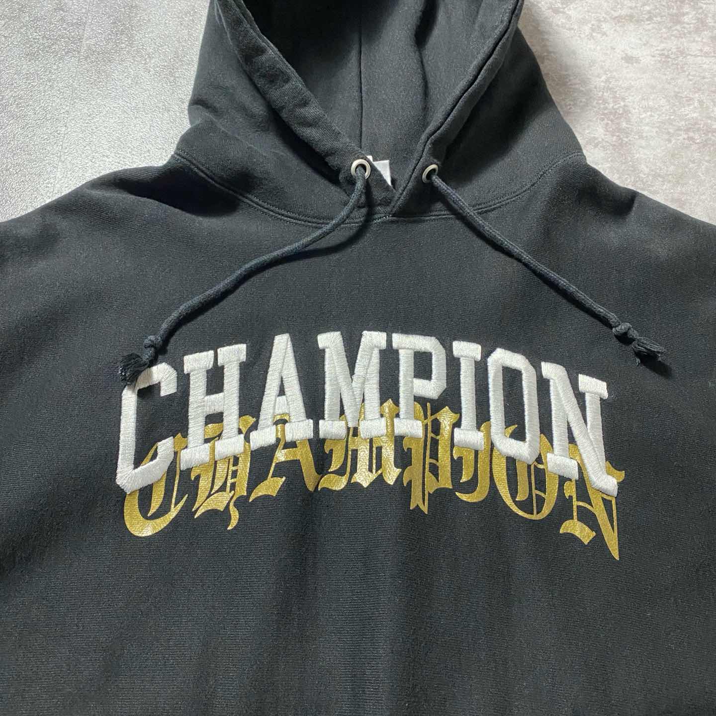 【XL】00's チャンピオン リバースウィーブ 刺繍×プリント ヘビーオンス スウェット パーカー