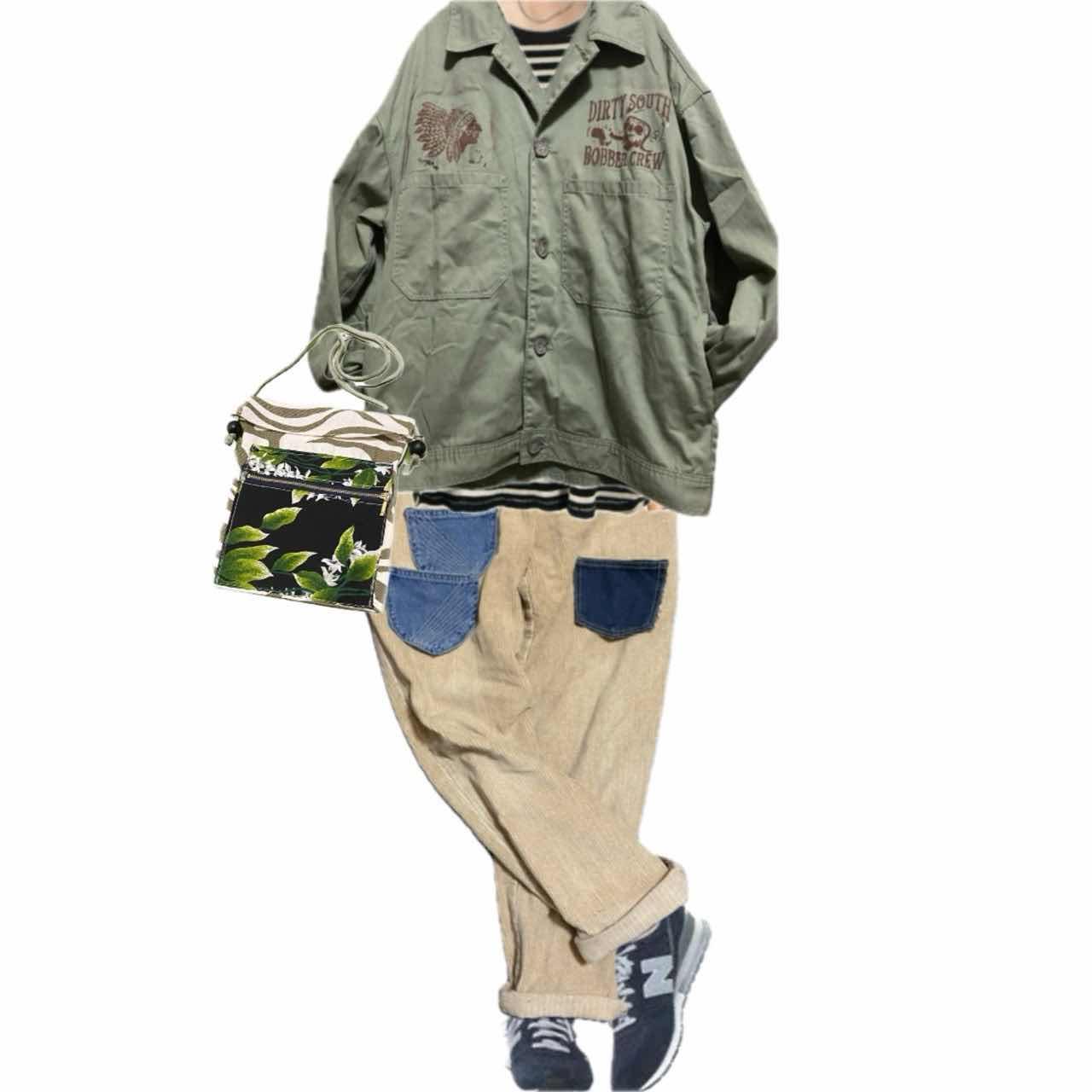 90s サンプル リメイク UTILITYシャツ ボバー、インディアン F 90年代の80年をイメージして作られたゆるだぼのボックスシルエットにユーティリティに入るのですが、サイドにポケットを施すことで、胸にニコのポケット サイド二個ポケットで、 ユーティリティの弱点を払拭した。 デザイナーネイティブのサンプル品となります。それをせっかくこんなにシルエットがかっこいいんだから、リメイクしたらもっとかっこよくならないかなと思ってしてみました。 ボバースモーキースカル インディアン スプレーアート施し 世界に1つの年中活躍するユーティリティシャツを作ってみましたのでコーディネートのように少しレイヤードを決めれるのか、ボックスシルエットの魅力を生かし、カジュアルなベージュのリメイクボトムでニューバランスを決めたらなんかかっこよくなったので、参考にしてもらえたらかなり嬉しいです。そしてゲットしてもらえたらさらに嬉しいです。笑 ちょっとふざけて書いており見えるかもしれませんが、かなり手間をかけて丁寧に仕上げましたので、確実にあなたの教えを格上げする事は保証いたします。自信作です。 ▷color◁ オリーブグリーン【ミリタリーカラーだが、このカラーもnativeオリジナル】 ※ブラウザで異なる場合ありますがかなり実物には、近づけてます、 ▷size◁ 平置き片面採寸【㎝表記】 表記size F oneoff マテタグは、1点ものは、無い、義務が、ないから、量産には、義務がある、 着丈/70 身幅/66 肩幅/63Boxds 袖丈 /65↓ ボタンあるから、長さ関係ない、 DSは袖はハンガー採寸 ※多少の誤差は理解下さい 170/Mジャスト体型の私が着て、✔️参考に ジャスト オーバーサイズ ビックサイズ✔︎ 【素材】 コットン 【状態】 美品 検品、洗濯、検品で、3回チェックして発送しますので、ご安心して、お買い求め下さい!!